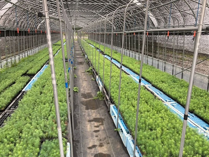 苗畑の現地見学では、昔ながらの植え付け機械が今なお現役で活用されている様子から組織培養による苗木育成の様子、普段関わりの薄い緑化木生産の様子までを案内してもらい、見識を深めることのできた2日間でした。(K)